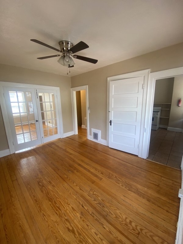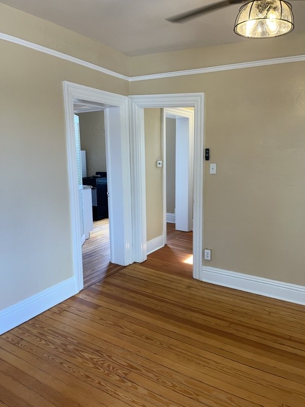 Bright upper-level apartment in downtown Colorado Springs on the Old West Side, near Colorado College. Wood flooring, ceiling fans, and a private deck. Shared laundry facilities and off/on-street parking. Pets considered with owner approval.