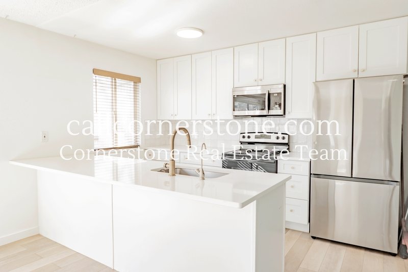 Beautifully remodeled 2 bedroom, 2 bath home. Everything is updated and modern. Open concept kitchen into dining & living room. All stainless steel appliances. Lots of natural light. Wood Fireplace and floor to ceiling book cases. Fenced back yard with large shade trees. Single car garage with lots of off street parking. All main floor living to include a laundry room.