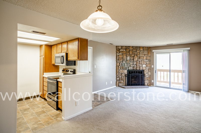 Welcome home to this spacious one bedroom condo in the Southeast Colorado Springs area, just north of Quail Lake Park. This upstairs unit is convenient from street parking or an assigned parking space in the community. Inside the unit features a fireplace, covered balcony, A/C, bay window in the bedroom, updated appliances in the kitchen, and updated washer and dryer. Community pool access, PO box, and trash pickup included in rent, pending restrictions. Convenient to Fort Carson. Pets on owner approval, cannot exceed one dog and one cat per HOA policy. HOA covenants in effect.